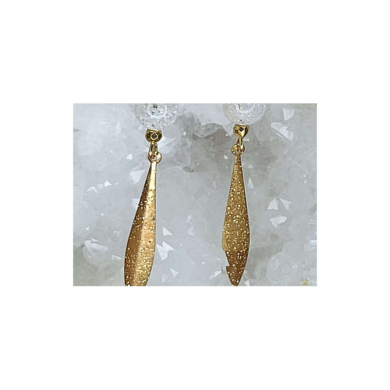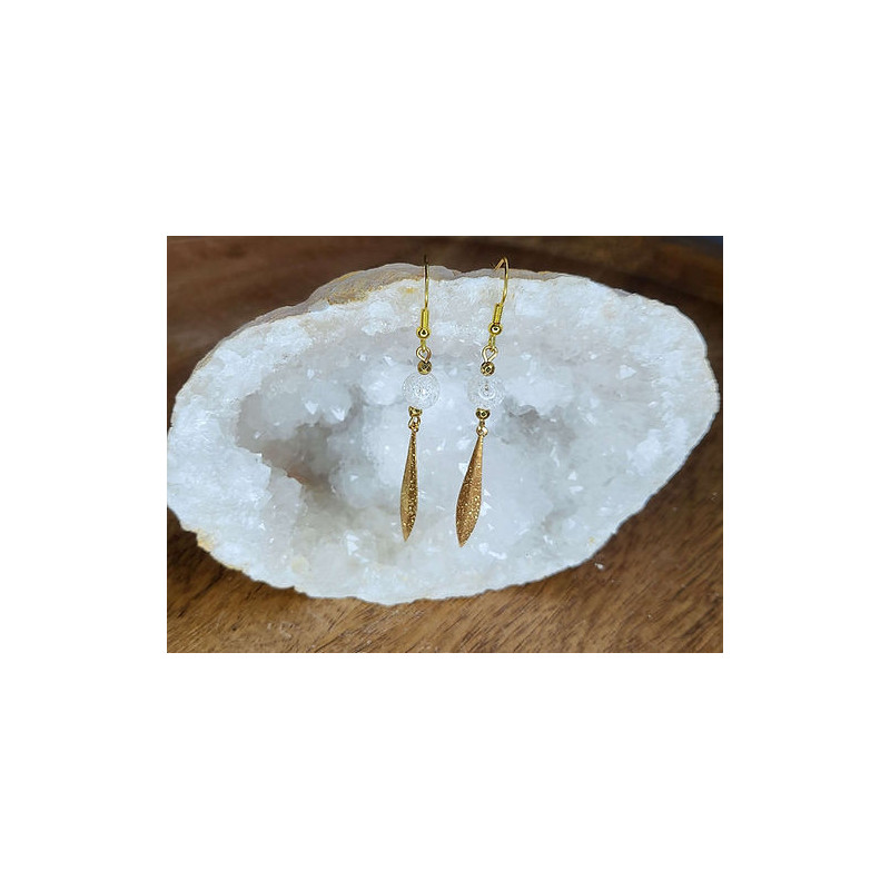 Boucles d'oreilles en acier inoxydable doré avec pierre naturelles de Quartz rutile.