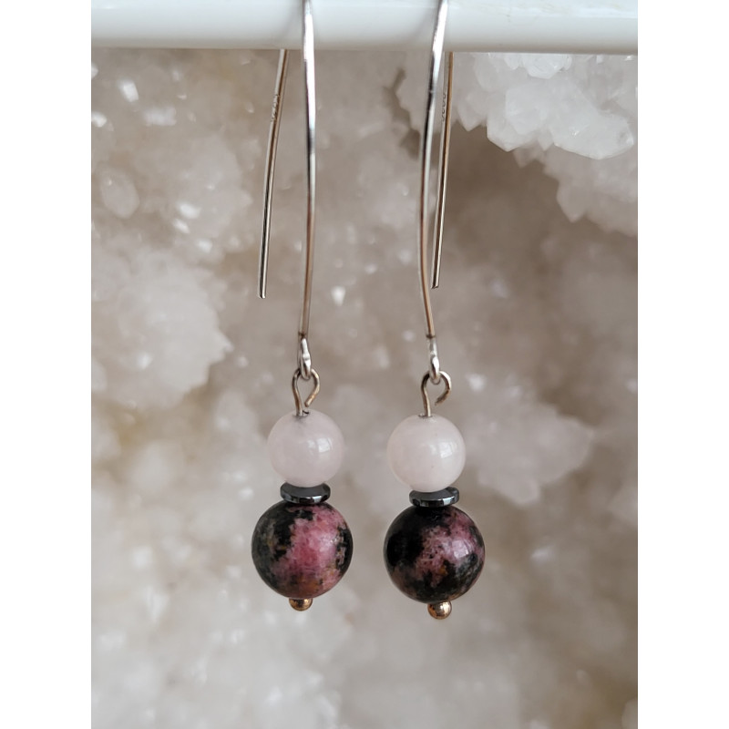 Boucles d'oreilles en argent 0.925, Rhodonite et Quartz rose