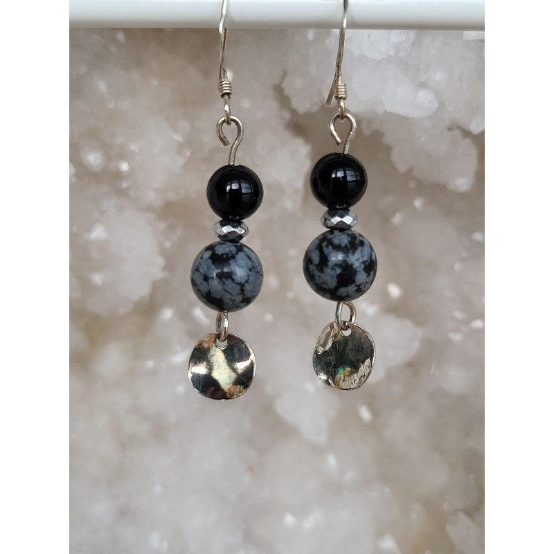 Boucles d'oreilles argent, Onyx et Obsidiennne mouchetée