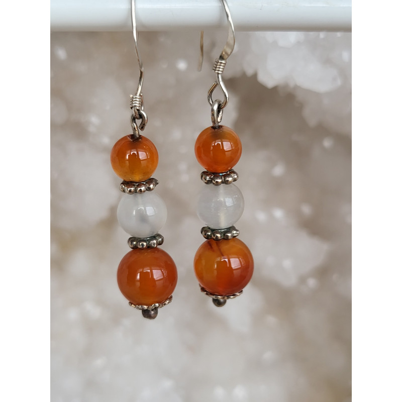 Boucles d'oreilles argent, Cornaline et Pierre de Lune