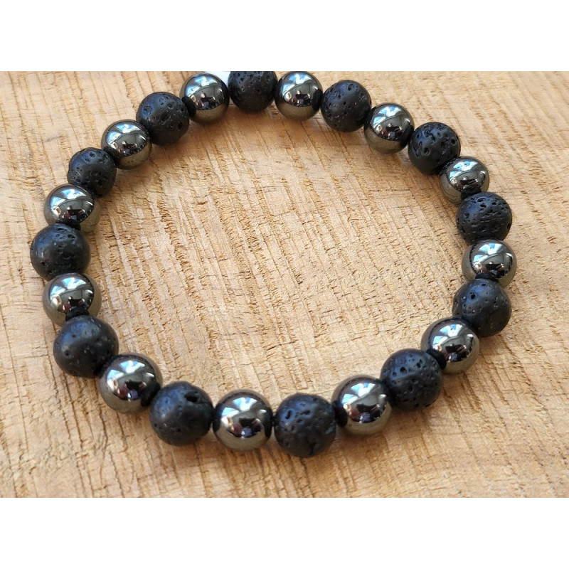 Bracelet pierres de lave et Hématite en perles de 8 mm