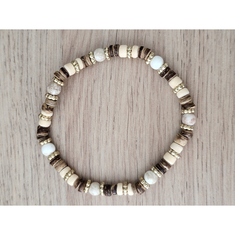 Bracelet bois de coco et pierres naturelles de Magnésite