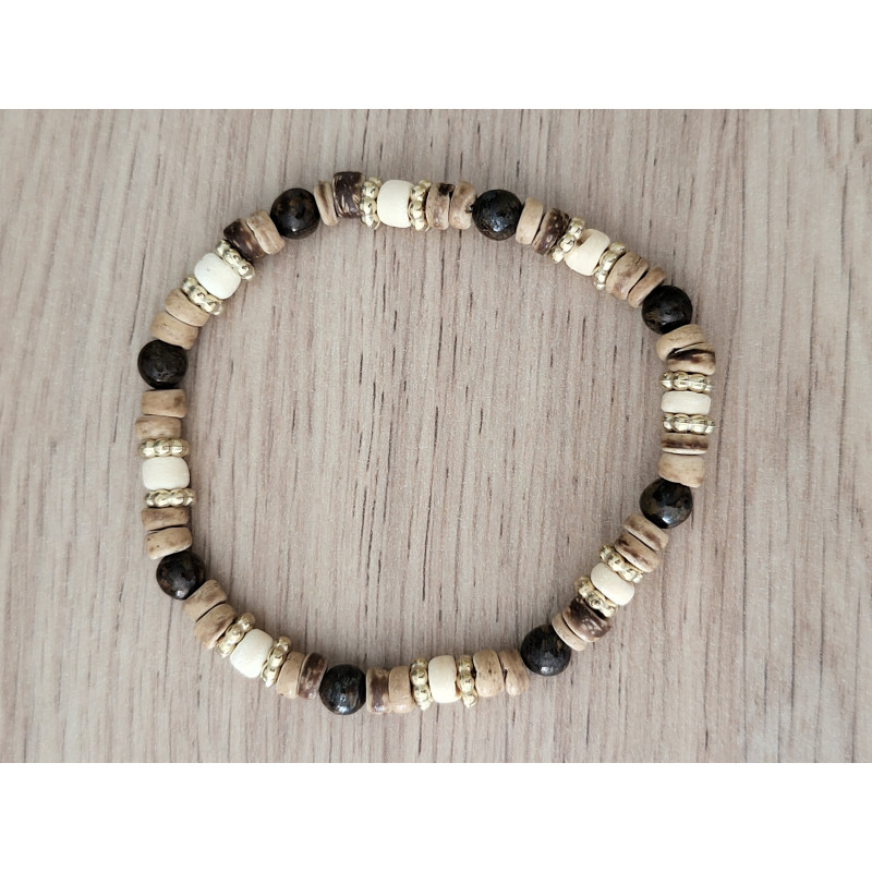 Bracelet bois de coco et pierres naturelles