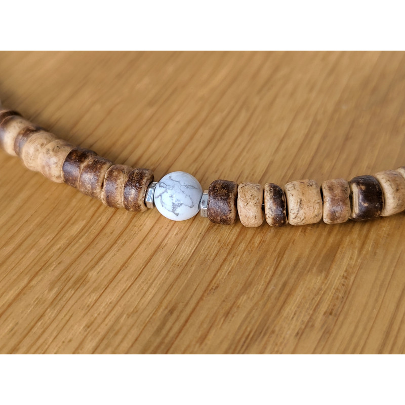Collier en bois de coco et Howlite