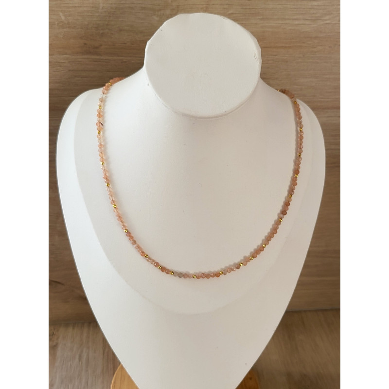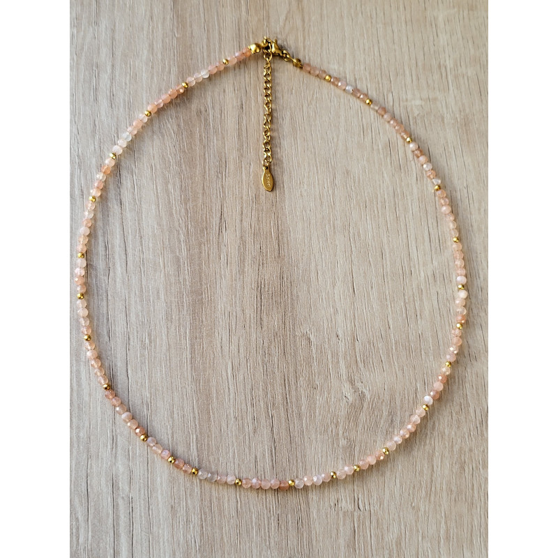 Colliers en perles facettées Pierres du Soleil 3 mm et perles d'Hématite galvanisées, monté sur fil câblé, chaine de rallonge et fermoir en acier inoxydable