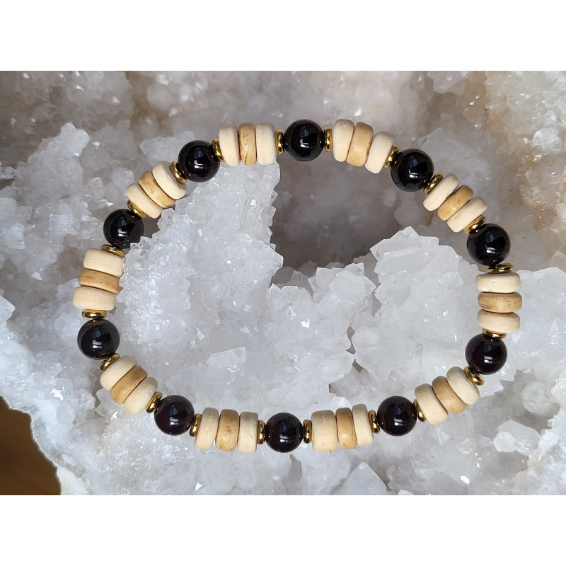 Bracelet Homme Bois de Coco et Grenat Almandin