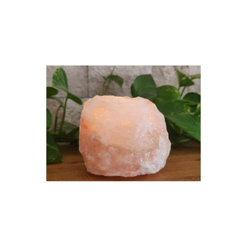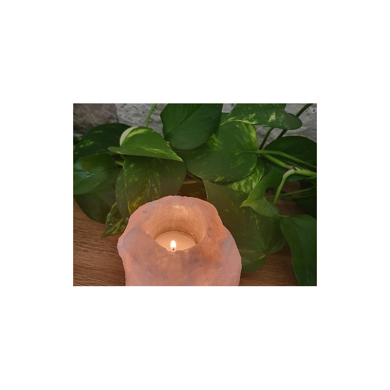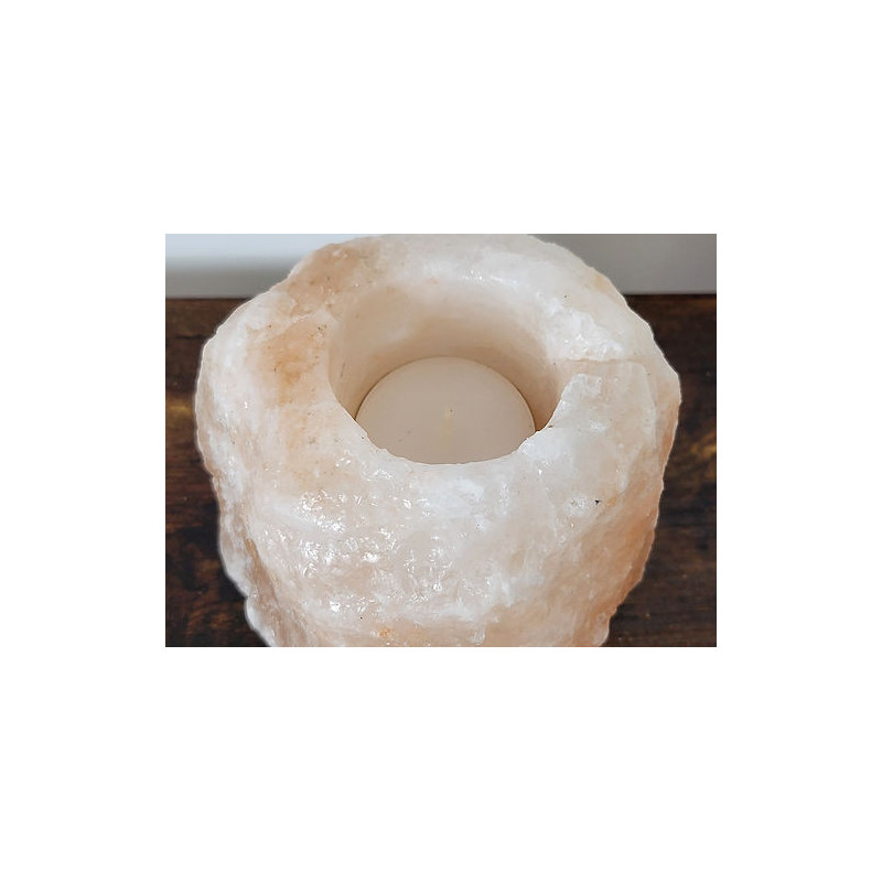 Bougeoir en pierre de sel. (Photos non contractuelles, chaque pièce est unique en raison de leurs couleurs qui peuvent variées ainsi que la pierre qui est taillée différement d'un article à l'autre...)