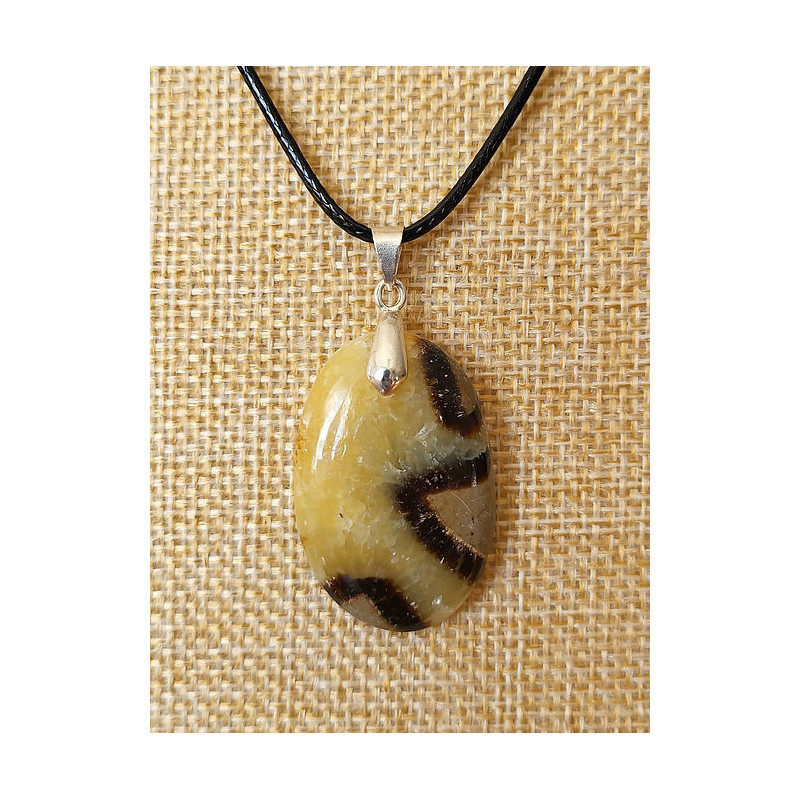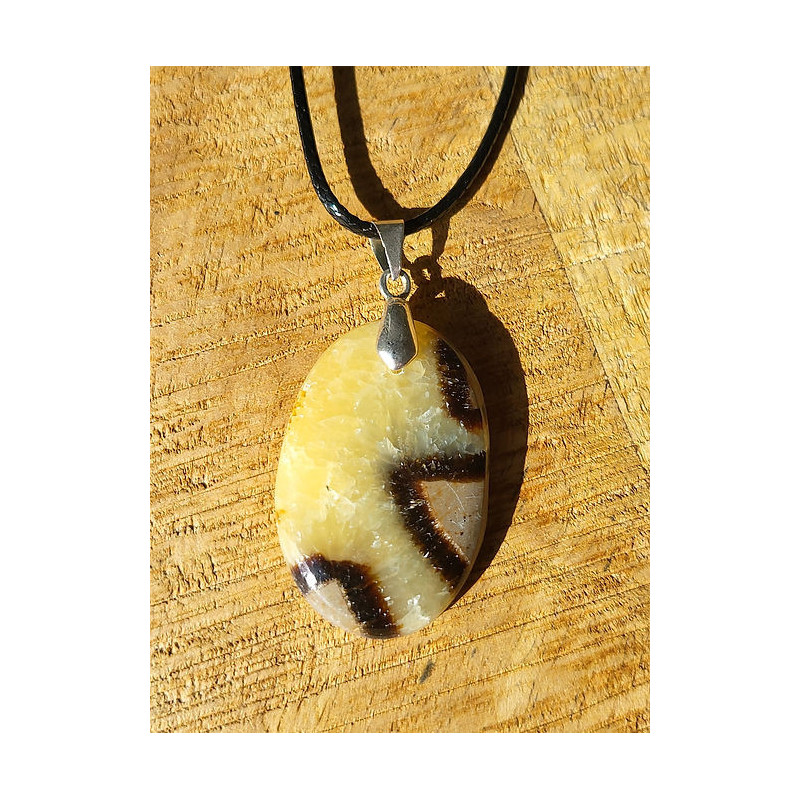 Collier Septaria, 47 carats, provenance Madagascar. Monté sur cordon ciré 40 cm avec sa chaînette d'extension 5 cm.