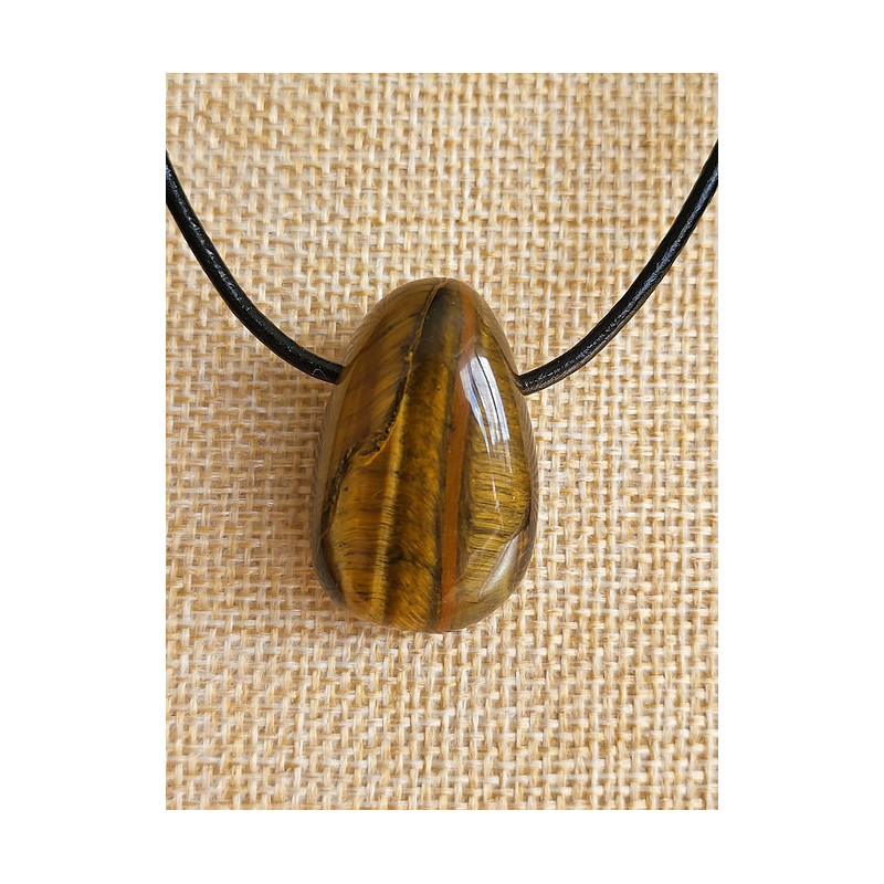 Collier Oeil de Tigre, monté sur cordon ciré 40cm avec fermoir en mousqueton et chaînette d'extension 5cm.