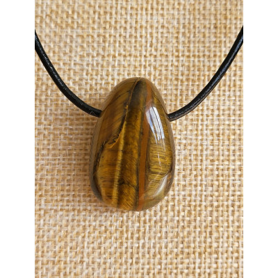 Collier Oeil de Tigre, monté sur cordon ciré 40cm avec fermoir en mousqueton et chaînette d'extension 5cm.